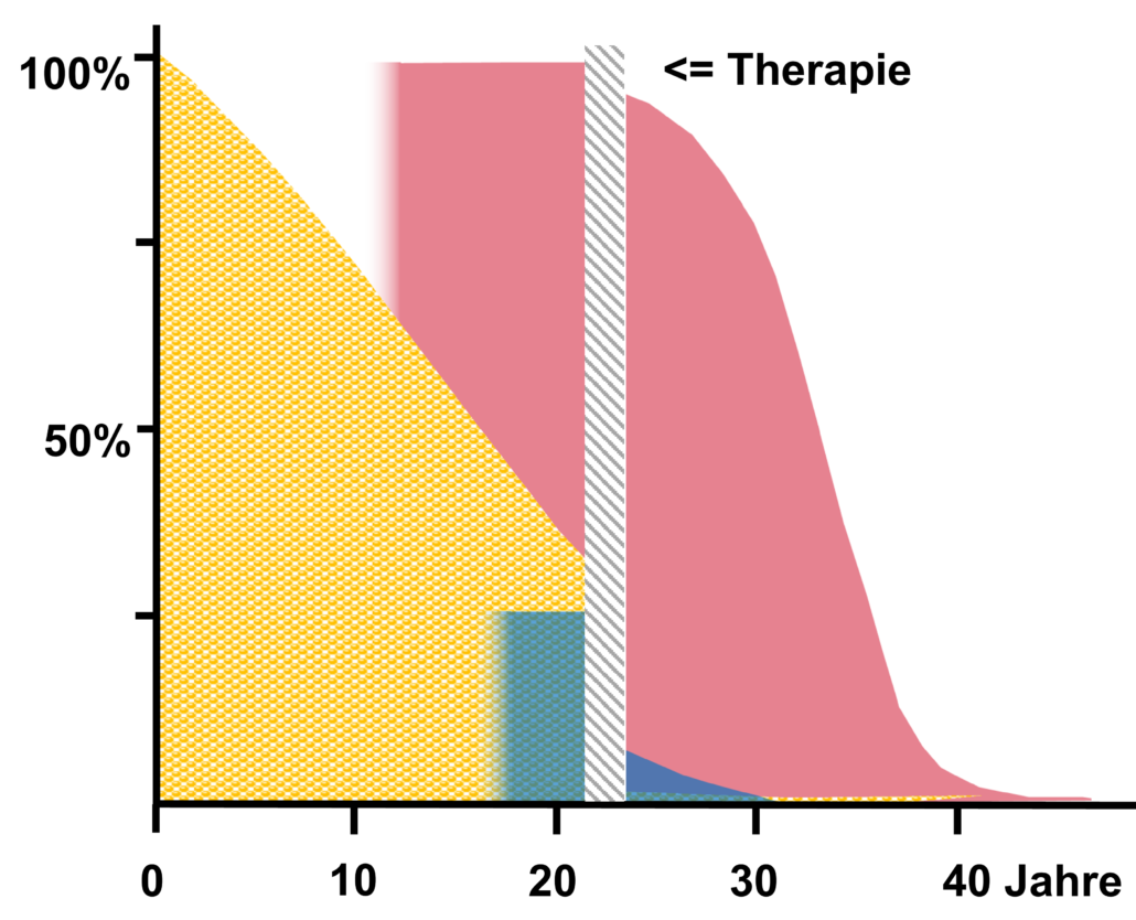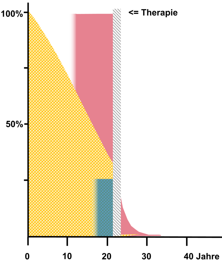 Ist der Verlust weitgehend, kehren Zyklus und Fruchtbarkeit nach der Therapie nicht mehr zurück. Dies ist in der nachfolgenden Grafik symbolisch dargestellt.